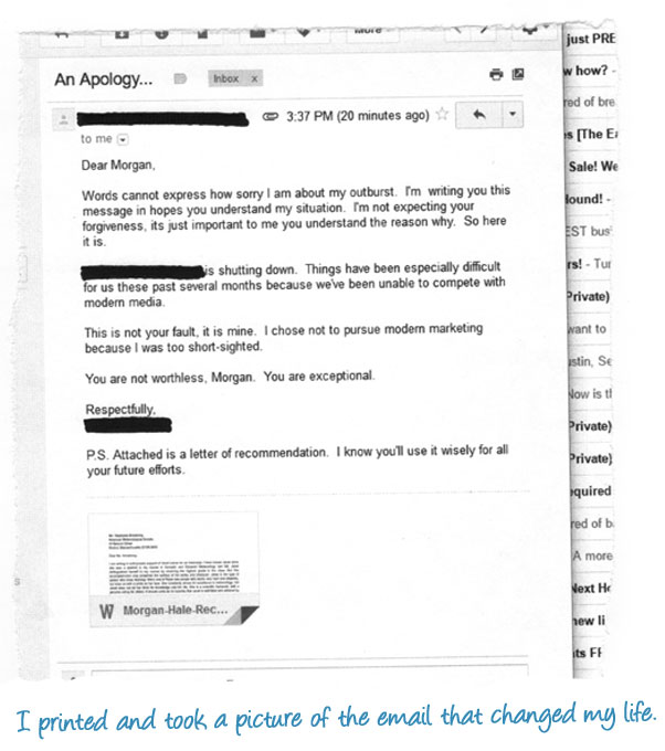...that made me stop dead in middle of the street and drop my box of resumes, I never would've been where I am today.